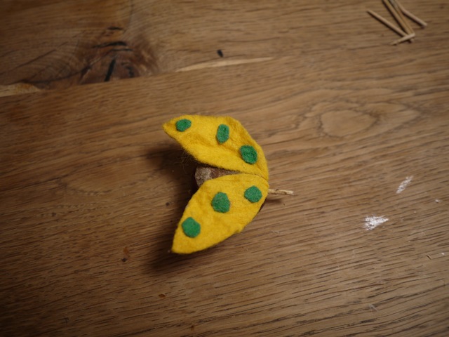 - Zahnstocher halbieren und auf der Oberseite einstechen = Stacheln.