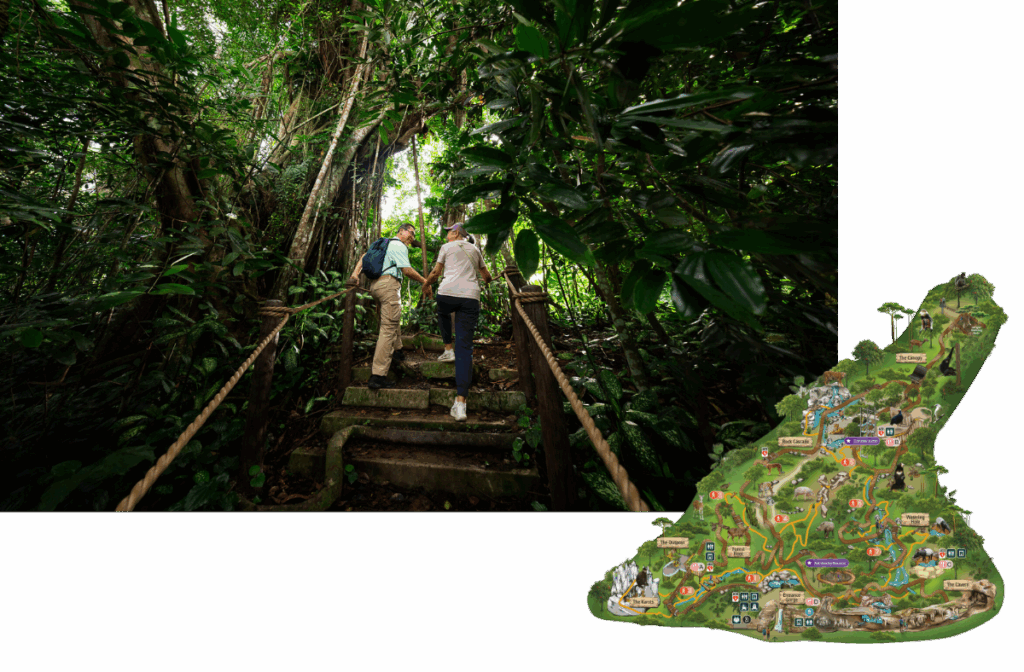 1. Rainforest Wild ASIA (Mandai) — Baumkronenpfade, Netzlabyrinthe, interaktive Ranger-Programme. Preis: Tickets einzeln ab ~S$20–S$30 (Single-Park / Bundles möglich). Warum: echtes Dschungel-Abenteuer, sehr kinderfreundlich. Bewertung: 🧭🧭🧭🧭🧭. mandai.com+1