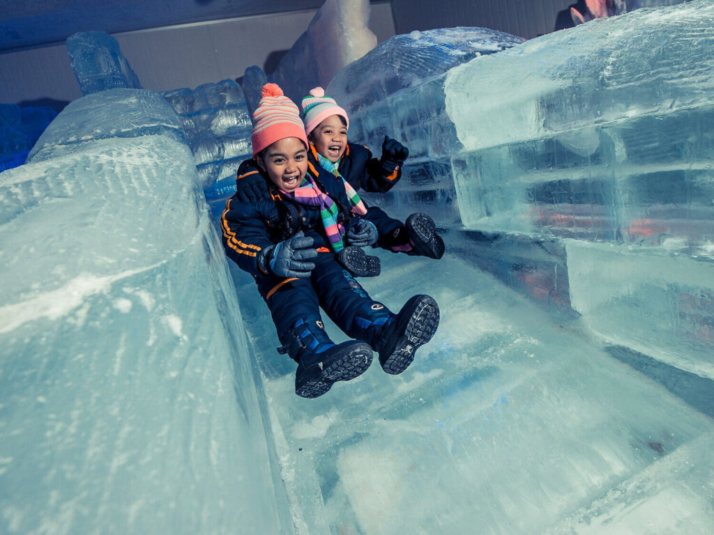 Singapur für Familien: In der Snow City können Kinder bei konstanten Minusgraden Schlitten fahren, Schneeskulpturen bestaunen und winterliche Aktivitäten ausprobieren. © Science Centre Singapore