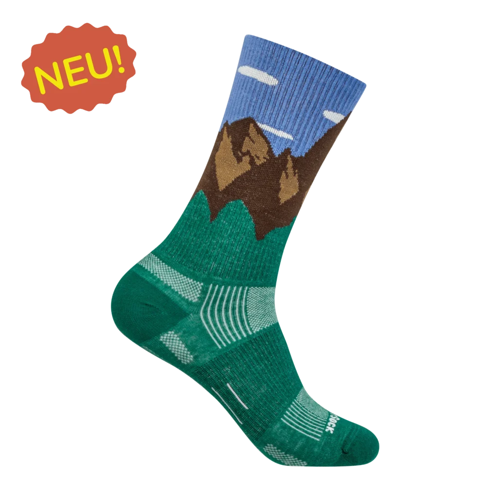 Die Berge rufen – und deine Füße sind bereit! Die neue Stride Crew Motivsocke von Wrightsock sorgt mit stylischem Bergdesign, doppellagiger Anti-Blasen-Technologie und nachhaltiger Verarbeitung für pure Wanderlust ab dem ersten Schritt.