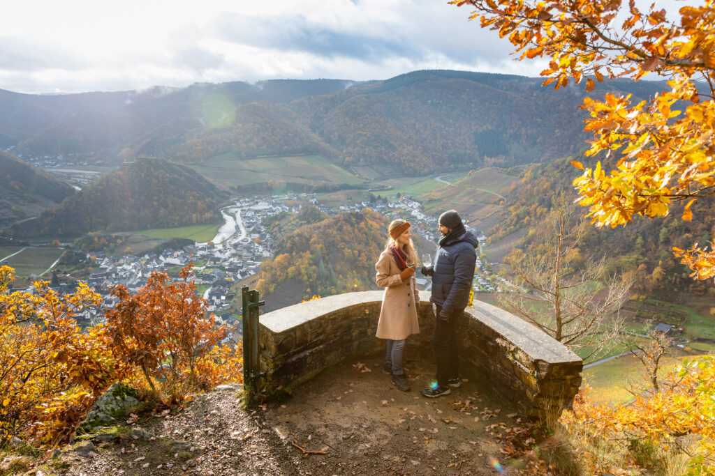 Wenn sich die Blätter färben und das Licht weicher wird, entfaltet Rheinland-Pfalz seinen ganzen Zauber. Das Ahrtal mit seinen Burgen, Weinbergen und spektakulären Felsformationen gehört zu den besten Regionen, um den Herbst aktiv zu erleben. Ein Paradebeispiel ist die Große Saffenburgrunde – ein Rundwanderweg, der auf 14 Kilometern Natur, Geschichte und Genuss vereint.