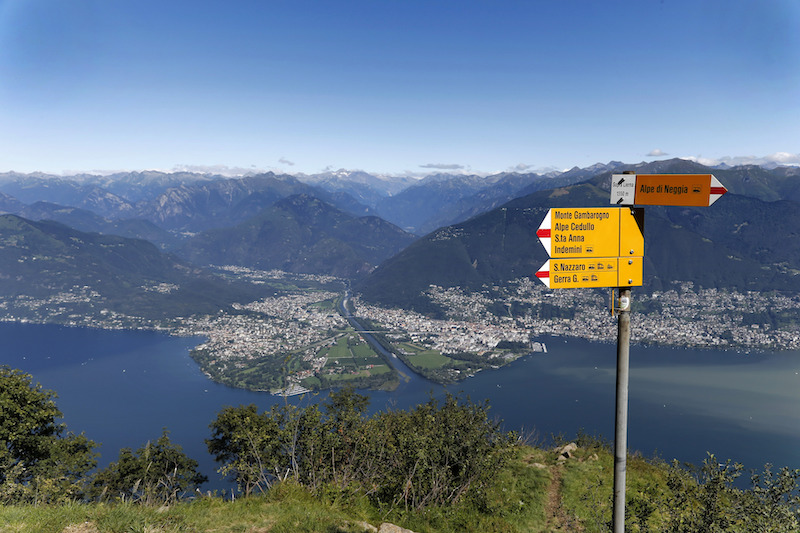 Diese Tour führt über den Monte Gambarogno mit Blick auf den Lago Maggiore. Die Route kombiniert offene Wiesen, Waldabschnitte und felsige Passagen. Besonders im Herbst leuchten die Kastanienwälder in warmen Farben.