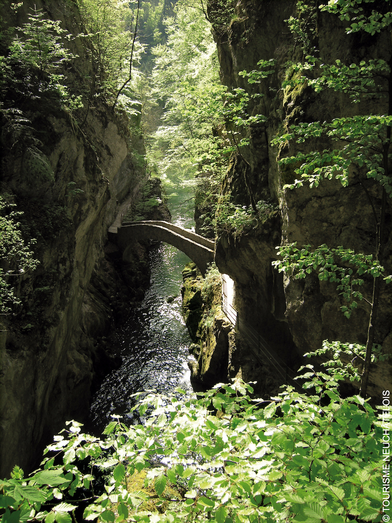 Von Noiraigue nach Boudry schlängelt sich der Weg entlang der Areuse durch eine spektakuläre Schlucht. Brücken, Stege und Felsformationen machen die Tour abwechslungsreich. Dank ÖV-Anbindung ist sie ideal für Tagesausflüge.