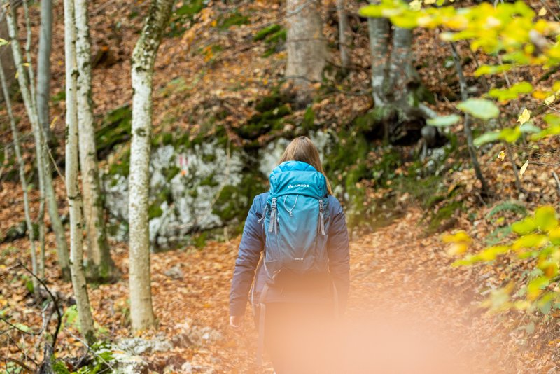 - Feste Bergschuhe mit Grip – Rutschgefahr durch Laub, Nässe & Frost.