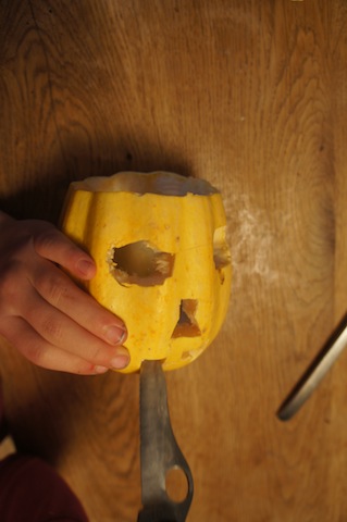 1. Kürbisse schnitzen – mit Schablone & Lächeln