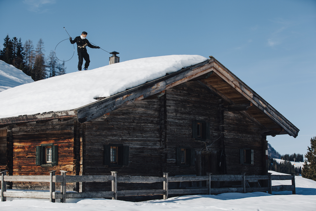 Schornsteinfeger gelten seit Jahrhunderten als Glücksbringer. In Tirol nennt man sie „Ruas“. Früher brachten sie Sicherheit in Holzhäuser. Heute schenken sie Wärme und Geborgenheit. Im Pillerseetal erkennt man Harasser schon von weitem: Ein schwarzer Punkt in der weißen Weite. Außerdem steht dieses Bild für ein Handwerk zwischen Himmel und Erde, Schnee und Feuer.