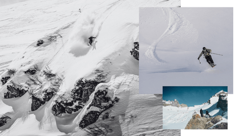Freeride und Freestyle‑Erlebnisse in Flims Laax: Freeride-Paradies Cassons: Die unpräparierten Hänge bieten perfekte Bedingungen für Lines abseits der Piste – Gian Ragettli (rechts im Bild) zeigt, wie es geht. © Remo Thommen / Nicholas Iliano