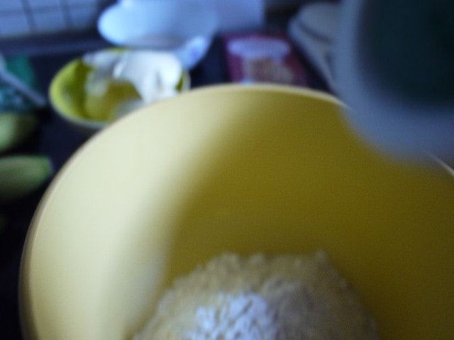 Zuerst häuft ihr Mehl, Zucker, Vanillezucker, Backpulver, Salz und Mandelaroma auf eine saubere Arbeitsfläche. Danach drückt ihr eine Mulde in die Mitte. Anschließend gebt ihr die Eier und die weiche Butter hinein. Jetzt knetet ihr alles gut durch. Der Teig ist klebrig – das ist normal.