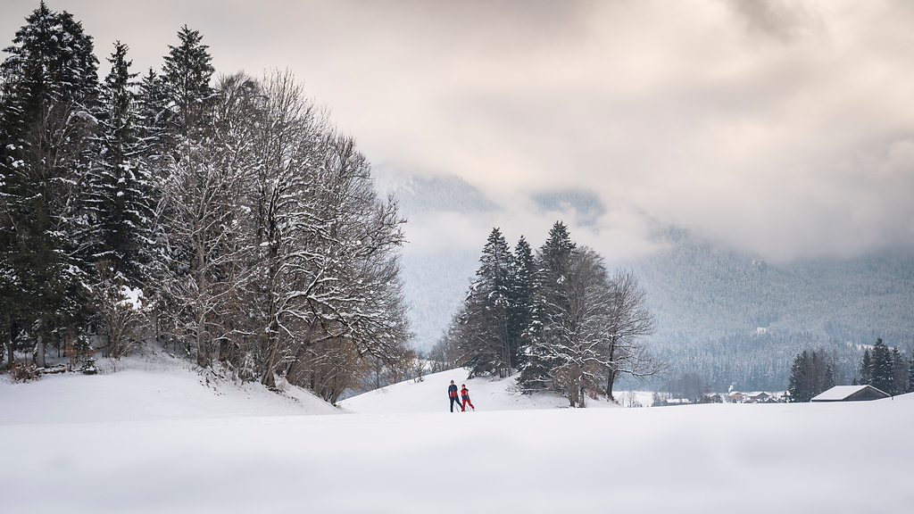 Winter ohne Ski: Langlaufen statt Slalom, Ruhe statt Rennen. Im Tölzer Land war der Berg nie nur Skipiste, sondern immer auch Ort zum Durchatmen. © Tölzer Land Tourismus / Dietmar Denger