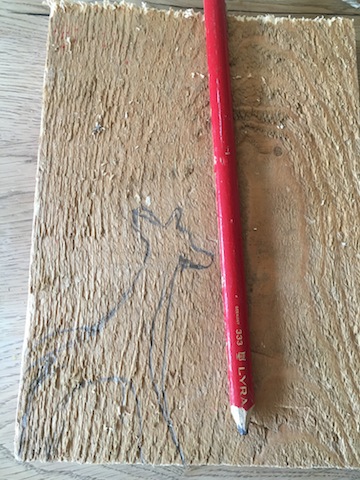 Bevor wir schnitzen zeichnen wir die Giraffe auf das Holz.