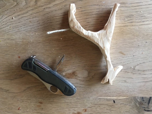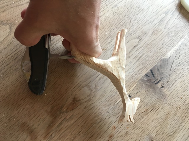 Mit kleiner Klinge und Ahle werden die Zwischenräume der Beine vorsichtig herausgearbeitet. Dieser Schritt erfordert Geduld, aber Kinder lieben es, wenn die Figur langsam Form annimmt.
