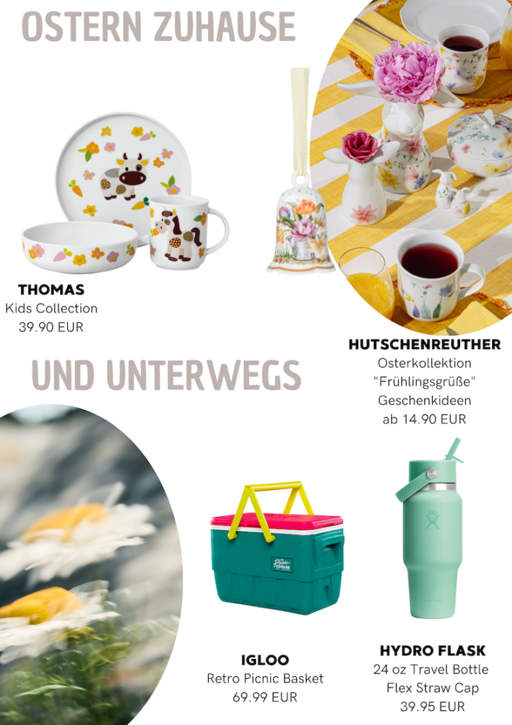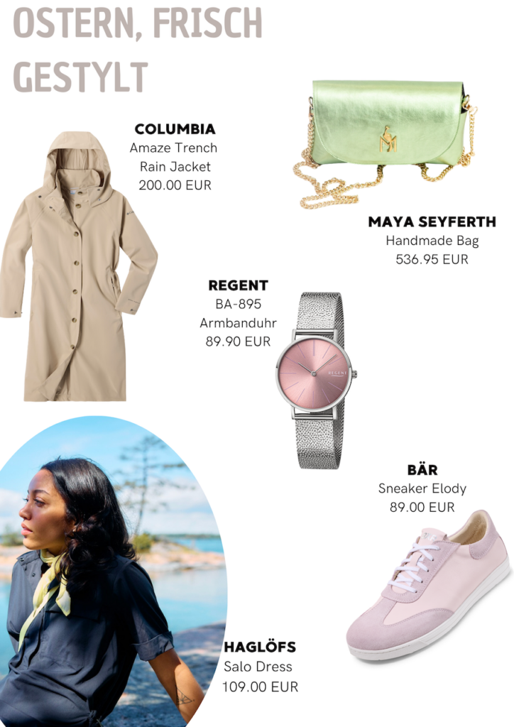 Ostern ist die perfekte Zeit, um die ersten warmen Frühlingstage zu genießen und sich eine wohlverdiente Auszeit zu nehmen. Die Feiertage stehen für gemeinsame Stunden mit Familie und Freunden, für genussvolle Momente und den Übergang in die neue Saison. Frische Styles setzen frühlingshafte Akzente und bringen neue Impulse in den Alltag. Ergänzt wird dies durch ausgewählte Inspirationen aus Food, Lifestyle und Fashion, die vielfältige Ideen für die Osterfeiertage liefern und gleichzeitig den Frühling einläuten.
